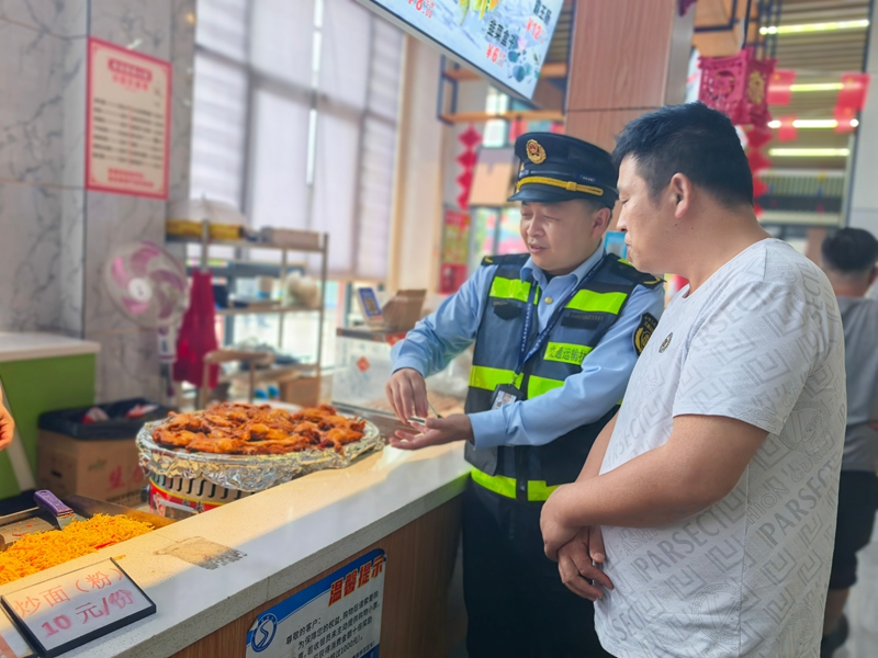 五大队“泉源管控+沉点盯防”,对办事区泊车区、加油区车辆违停、插队等行为及时疏导,对办事区餐厅、超市的食材储存、加工流程、餐具消毒等环节开展“拉网式”查抄,确生间、歇息区等场合清洁整洁;
